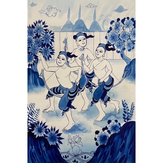 ภาพวาดการละเล่นไทยสีเอกรงค์ไม่มีกรอบ | Shopee Thailand