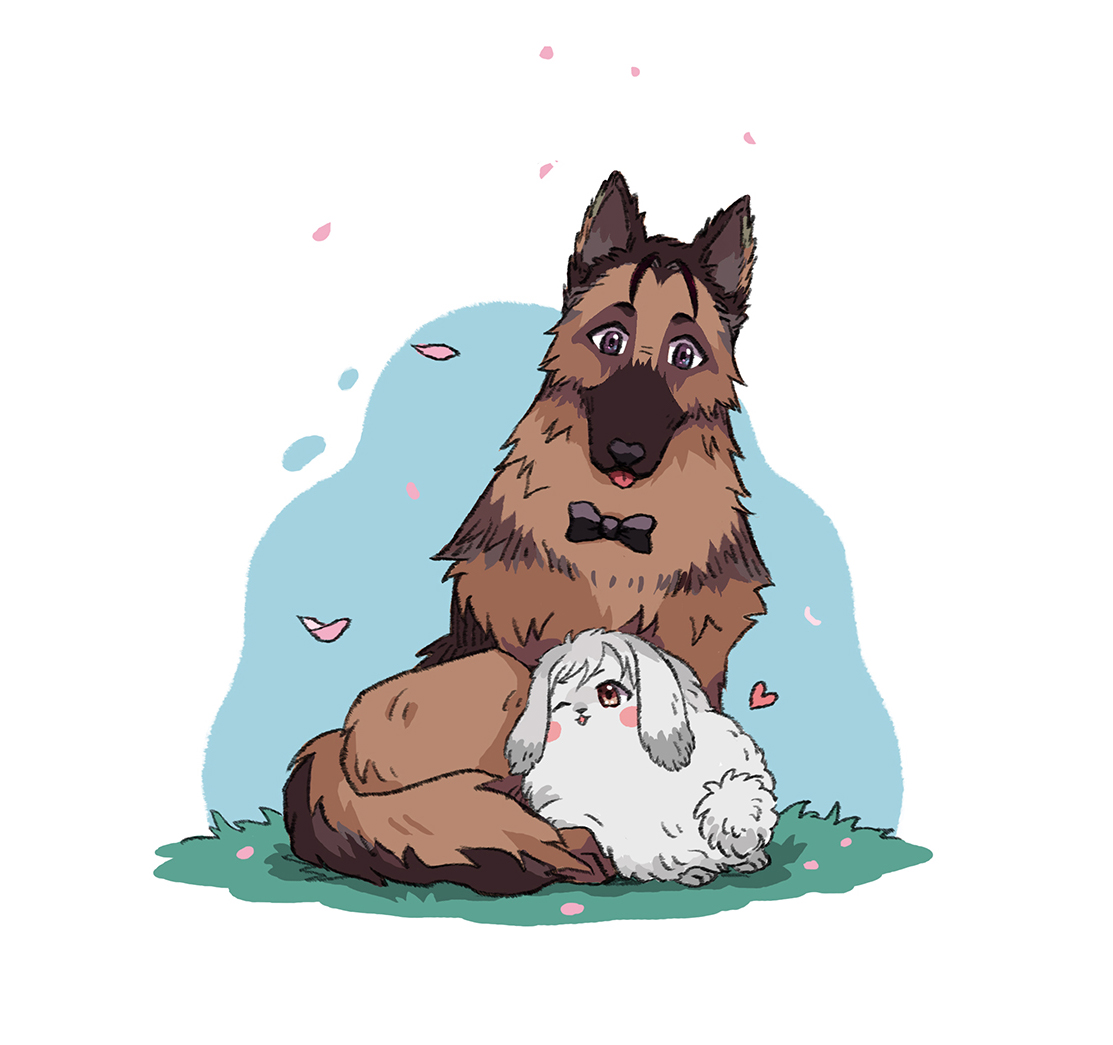 วอลเปเปอร์ : Ting Xie, ภาพวาด, ผู้หญิง, กำลังมองหาผู้ชม, ผมสีเข้ม, หมา …