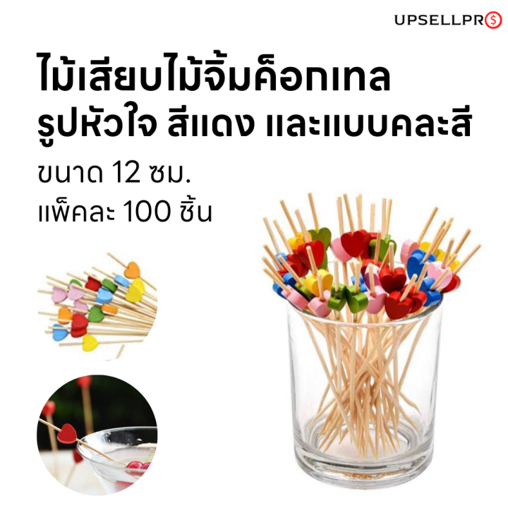 ไม้จิ้มค็อกเทล 12cm (บรรจุ 100 อัน)หัวรูปหัวใจ คละสี NF000059 – Joy and …