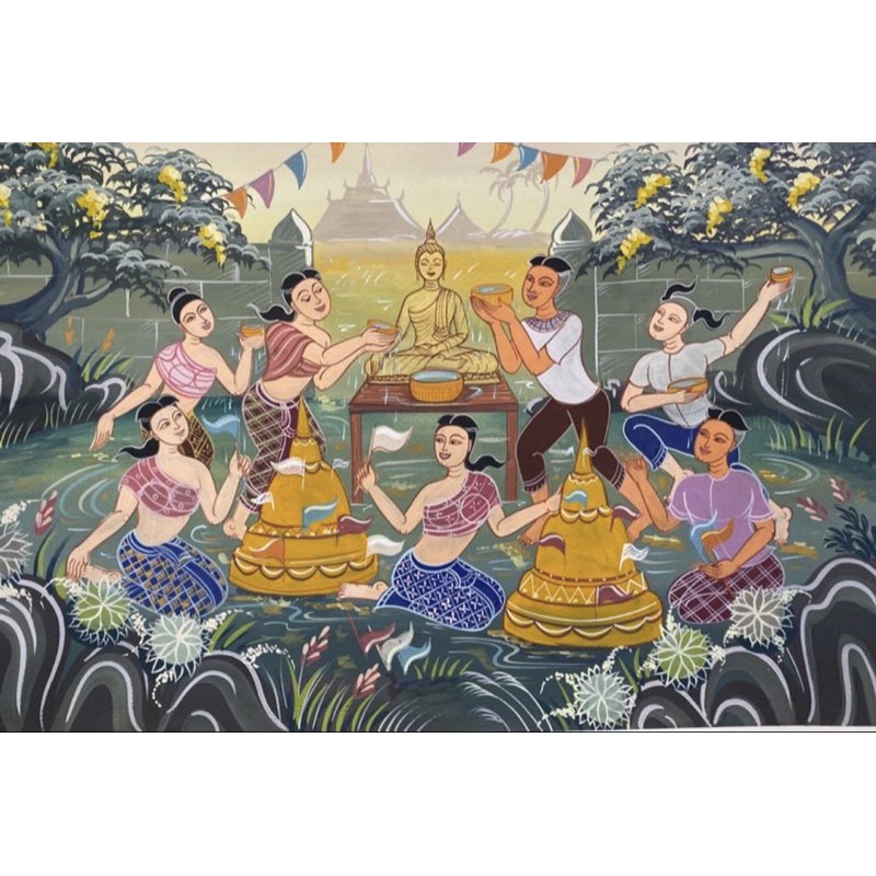 ภาพวาดแนวไทยประเพณี สาดน้ำไทยๆ ไม่มีกรอบ | Shopee Thailand