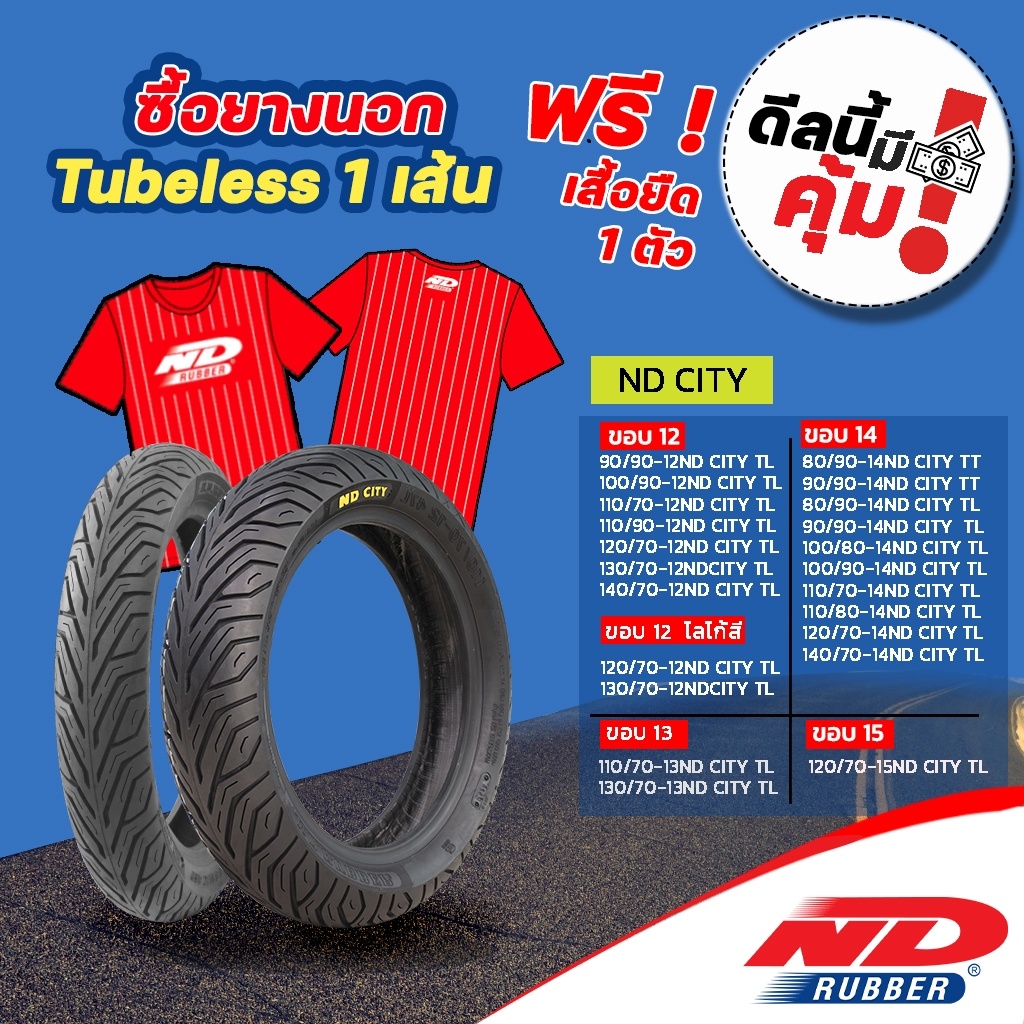 [ใส่โค้ด YG81CT9 ลด 40 บาท] ยางมอเตอร์ไซค์ ND Rubber ลาย City ขอบ 12-13 …