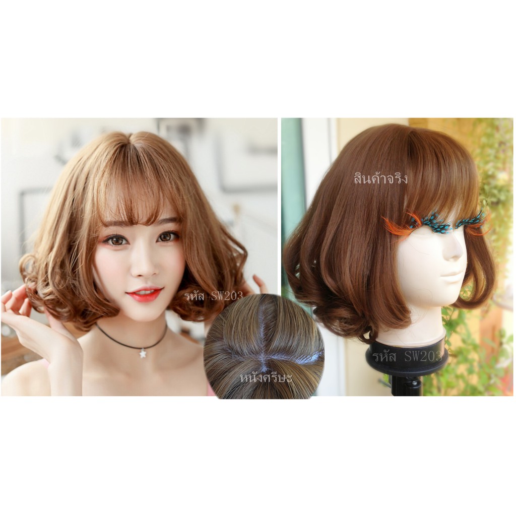 C1130 วิกผมลอนสั้น หน้าม้า – วิกผม วิกครึ่งหัวแฮร์พีช ขนตาปลอม คุณภาพดี …
