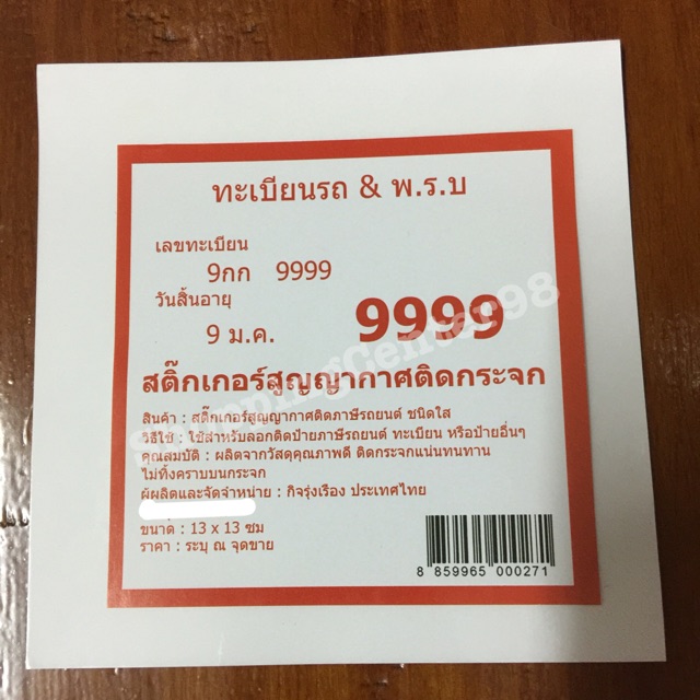 สติ๊กเกอร์สูญากาศ ป้ายภาษี ทะเบียน 1×5 แผ่น – 108pakchong