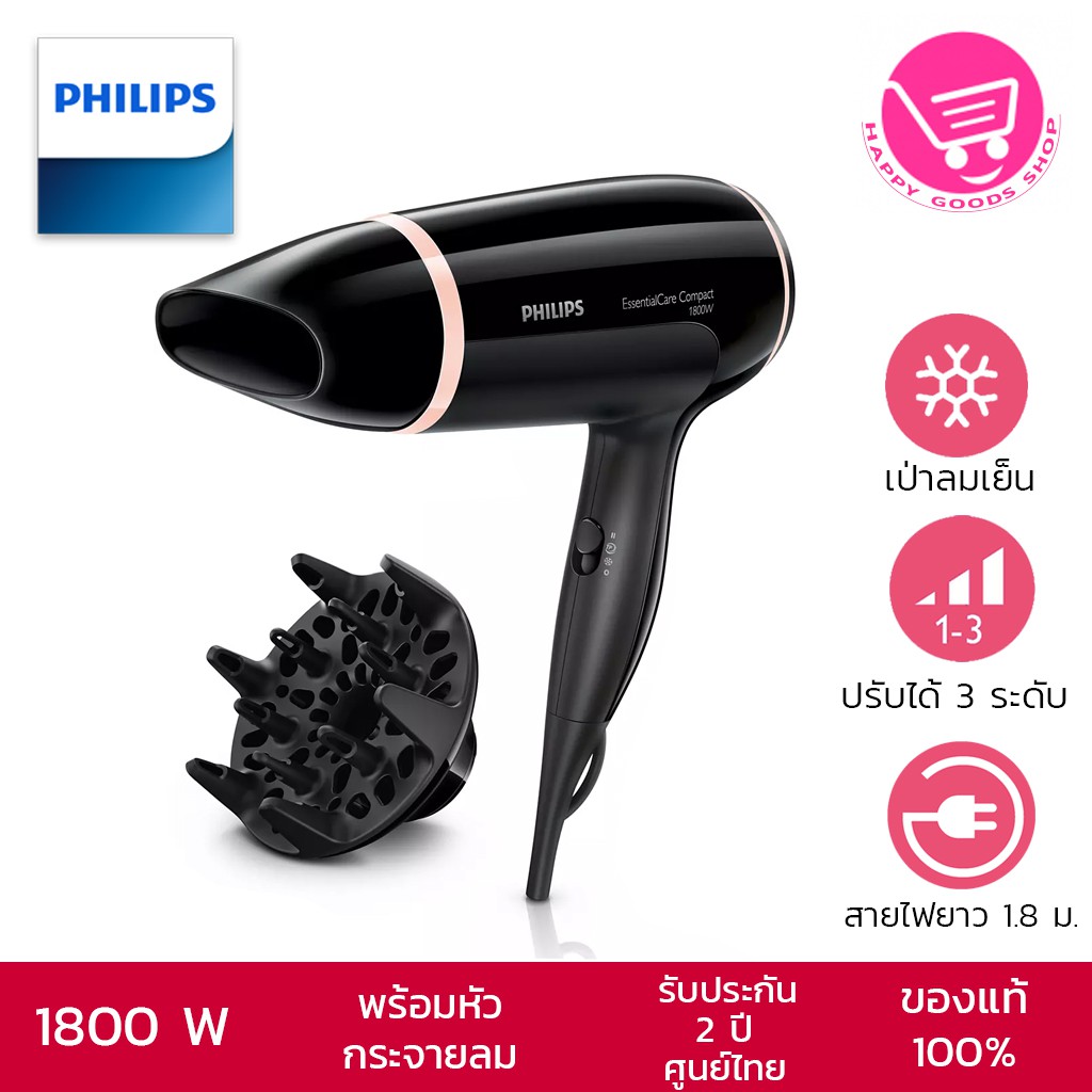 ราคาถูก Philips EssentialCare ไดร์เป่าผม 1,800 Watt with ionic รุ่น BHD004