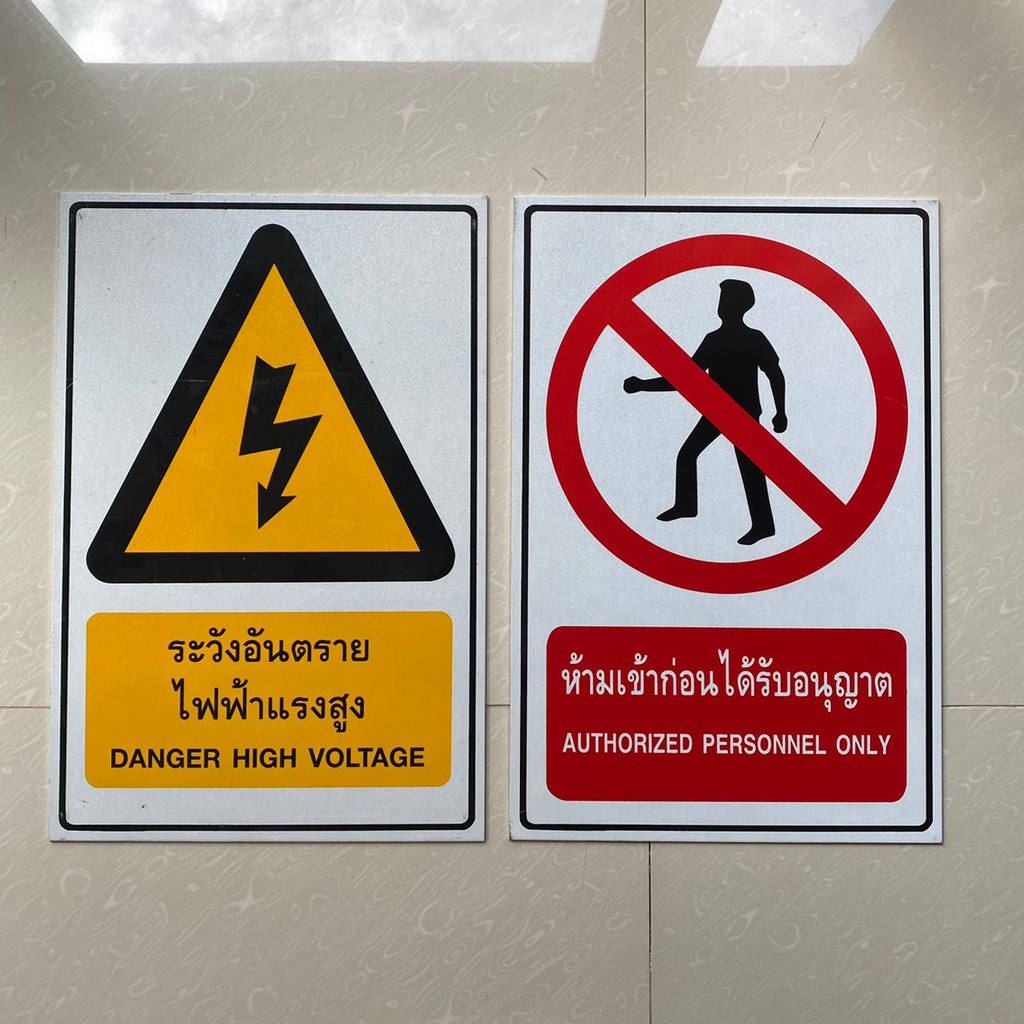 ป้าย ห้ามเข้าก่อนได้รับอนุญาต ระวังอันตรายไฟฟ้าแรงสูง ขนาด 30×45 cm …