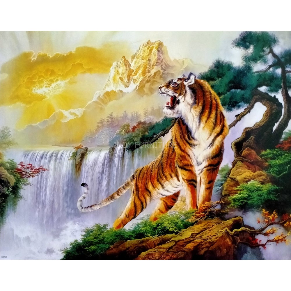 (800) รูปโปสเตอร์ขนาดใหญ่ ภาพวาด เสือเหลียวหลัง น้ำตก ขนาด 20×30นิ้ว …